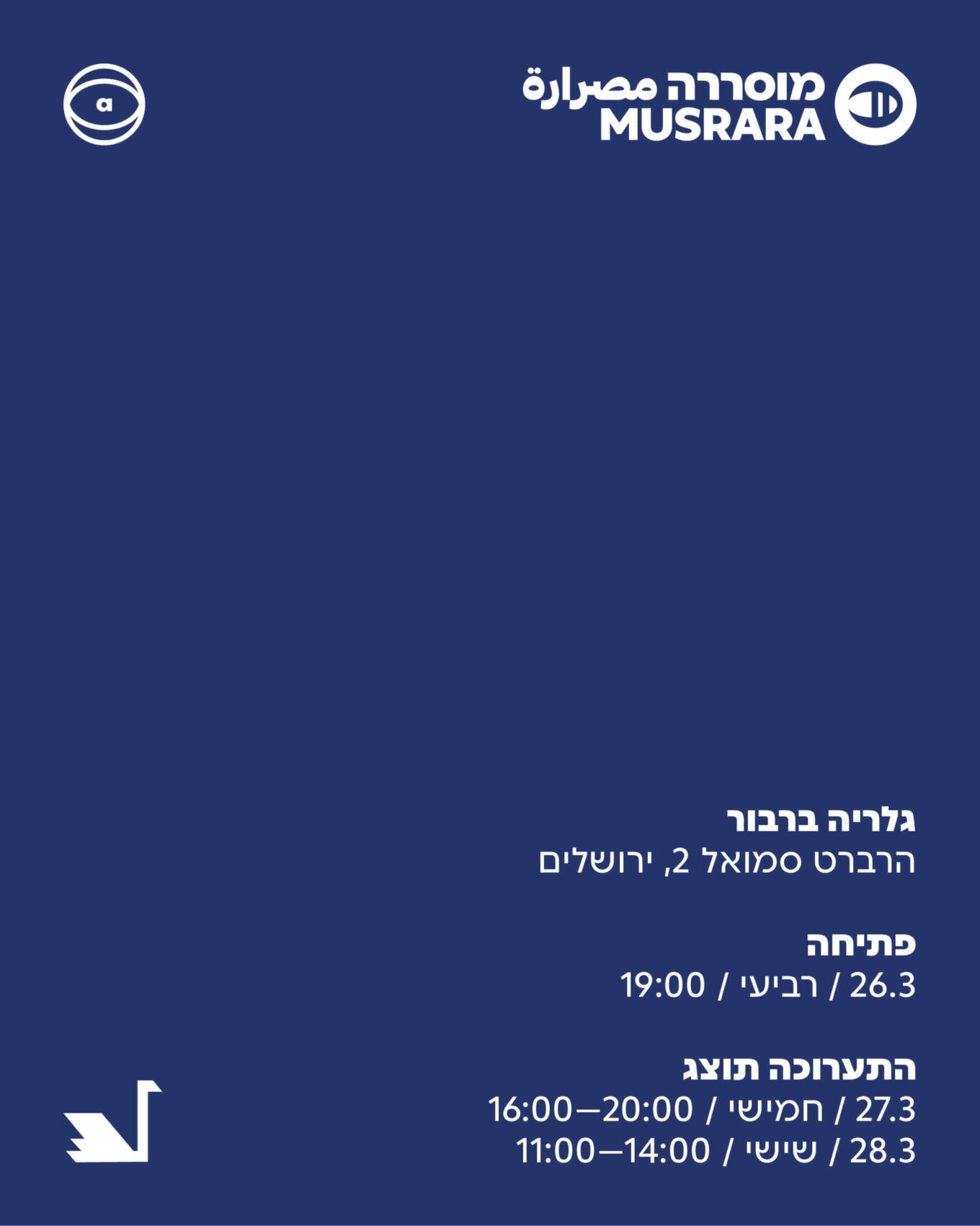 במהלך הסמסטר האחרון עבדו 5 סטודנטים משנה ב' במחלקה לאמנויות במוסררה על יצירות שיועדו מראש לתצוגה בגלריה ברבור. העבודה התקיימה במסגרת קורס ׳מיצב תלוי חלל׳ בהנחיית האמנית והמרצה רותי דה פריס, כחלק משיתוף פעולה מתמשך של המחלקה והגלריה. תהליך העבודה התחיל כתגובה לחלל התצוגה והאיכויות הארכיטקטוניות השונות שלו. ההיסטוריה של המבנה, הרחוב שנשקף מהחלונות והאמנות שהוצגה בחודשים האחרונים בגלריה שימשו את הסטודנטים כמקורות השראה לפעולה. הסטודנטים עבדו בנפרד, אך ככל שהעבודה על הפרויקט נמשכה, תדרים רגשיים משותפים נחשפו ביצירות השונות. בימים נבובים ואפלים, מלאים בחוסר ודאות, הסטודנטים יצרו עבודות העוסקות בחוויה של חוסר ומתייחסות לריקות ריקנות דרך פעולות וחומרים שונים.